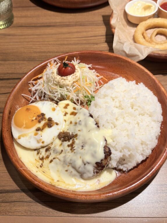 たっぷりとかかったチーズがハンバーグに絡んで、濃厚でコクのある味わいが最高でした。チーズ好きにはたまらない一皿です。